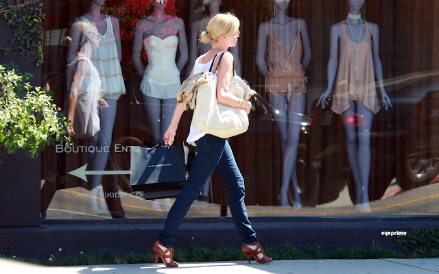 West Hollywood, CA - Charlize Theron heads to her car after spending the day shopping on bright sunny day in Tinseltown. The South-African born actress wore a pretty sleeveless blouse and carried a couple of overside bags on her way back to her car.