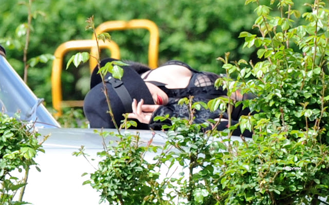 Rihanna spotted shooting scenes for her upcoming music video of her new song 'Te amo' with guest star, the French model Laeticia Casta at the castle of Vigny, suburbs of Paris, France, April 29, 2010.