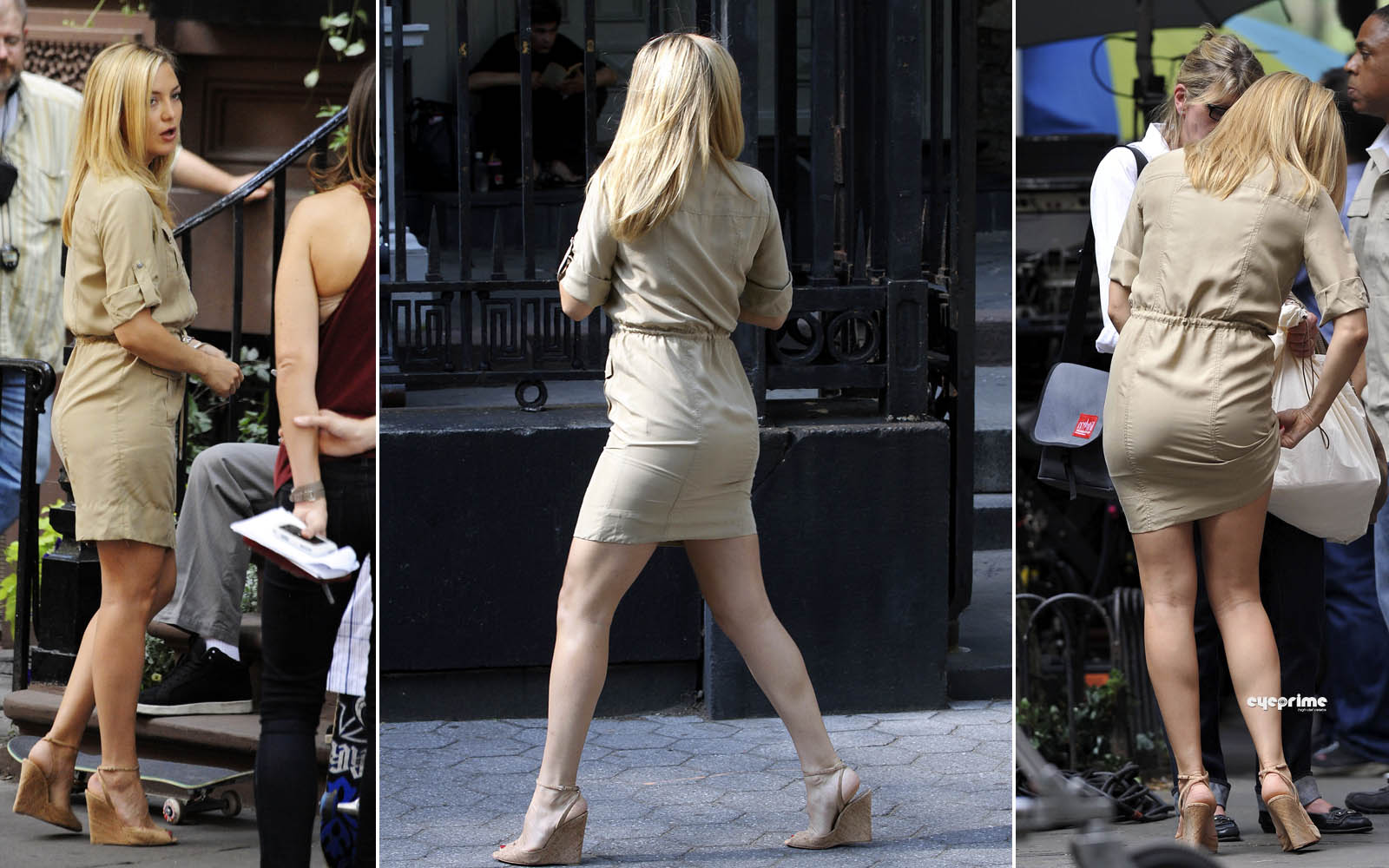 Kate Hudson enjoys a frozen yogurt treat while in between takes of "Something Borrowed" in the East Village of NY, Jun 3, 2010