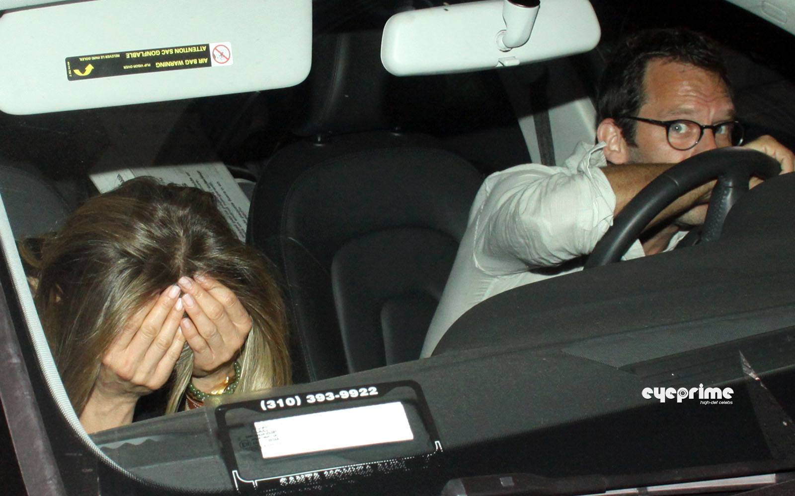 Thursday July 1. An unconfirmed sighting of Jennifer Aniston hiding her face as she is driven away from Sunset Towers by an