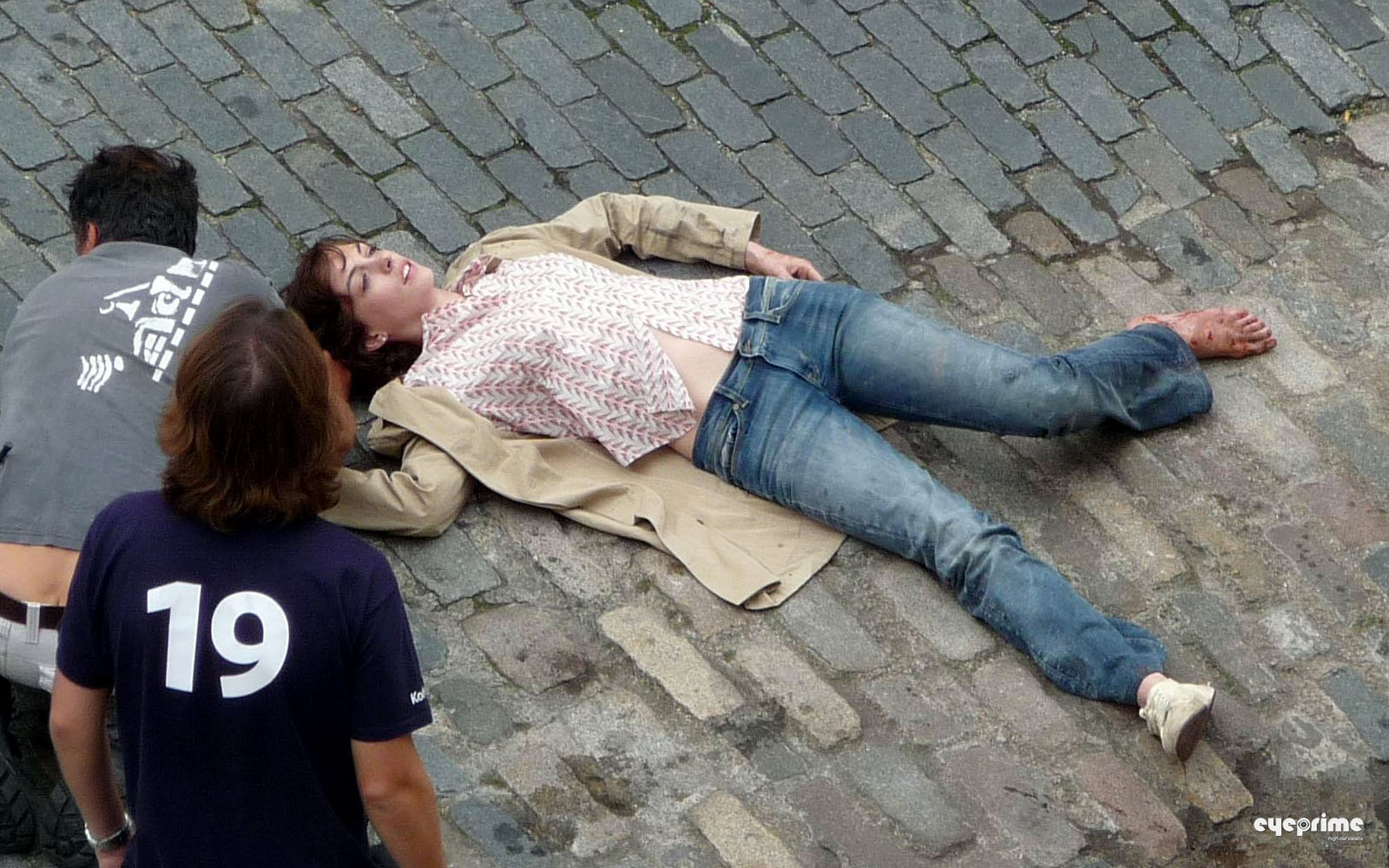 Anne Hathaway films a stunt on the set of ''One Day'' in London, Aug 24, 2010
