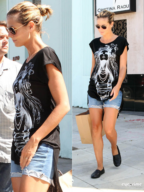 Heidi Klum gets the most out of her afternoon as she shops with a handful of the kids in Beverly Hills, CA on August 27, 2010.